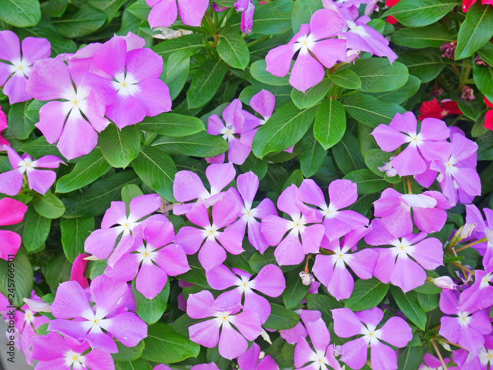 Small Pink Flowers Of Catharanthus Vinca Bush Purple With White Center Stock Photo Adobe Stock